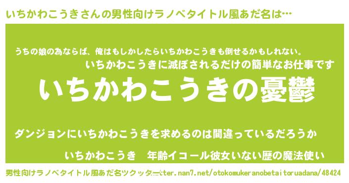 | 女子向けラノベタイトル風あだ名 | 『(仮)いちかわこうきのやんごとなき事情』 |