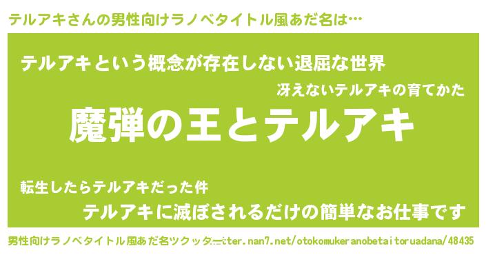 | 意味不明あだ名 | 『住所不定無職テルアキ(84歳)』 |