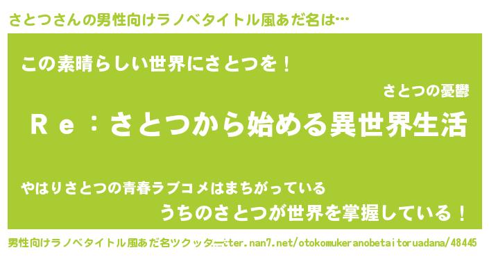 | 意味不明あだ名 | 『自称さとつ』『住所不定無職さとつ(93歳)』 |