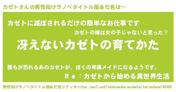 | ヒーロー風カッコイイあだ名 | 『サイバー戦士カゼト』『暗黒騎士カゼ』 |