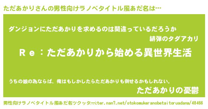 | 意味不明あだ名 | 『自称ただあかり』『ペロリンただあかり』 |