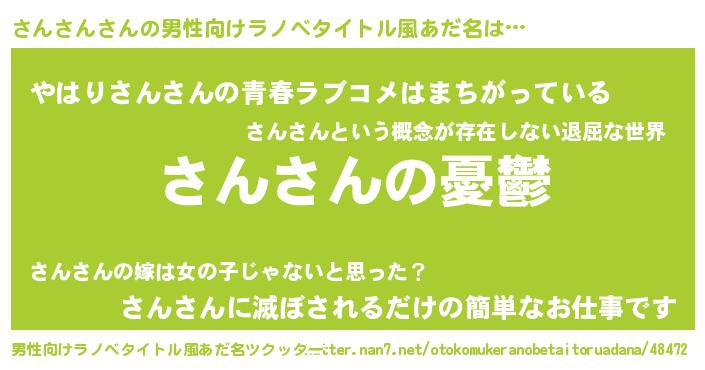 | 女子向けラノベタイトル風あだ名 | 『さんさん姫と円卓の騎士』 |