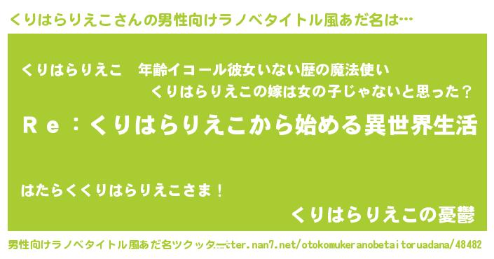 | 女子向けラノベタイトル風あだ名 | 『くりはらりえこストレイドッグス』 |