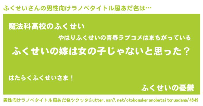 ふくせいさんの男性向けラノベタイトル風あだ名をツクッター!