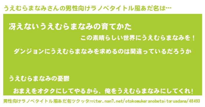 | 女子向けラノベタイトル風あだ名 | 『うえむらまなみの卵を拾いまして』 |