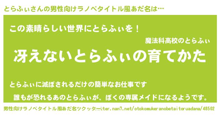 | 意味不明あだ名 | 『住所不定無職とらふぃ(98歳)』 |