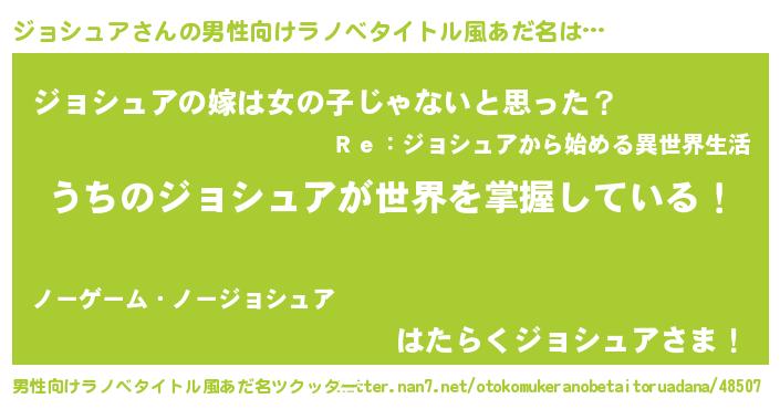 | ヒーロー風カッコイイあだ名 | 『天弓騎士ジョ』『究極戦士ジョシュア』 |