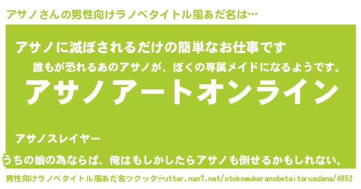 | ファンタジー風あだ名 | 『アサフェル』『エターナルアサノー』 |