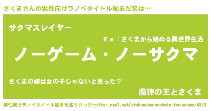 | 女子向けラノベタイトル風あだ名 | 『死神さくまの再婚』『さくま様がみてる』 |