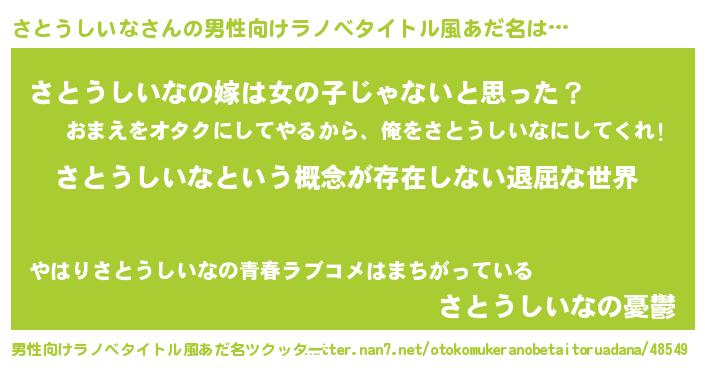 | 胡散臭い通販商品みたいなあだ名 | 『来世でも幸せになれる健康食品…その名も「さとうしいな」』 |