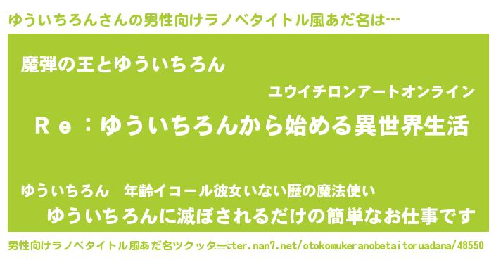 | 女子向けラノベタイトル風あだ名 | 『ゆういちろんストレイドッグス』 |