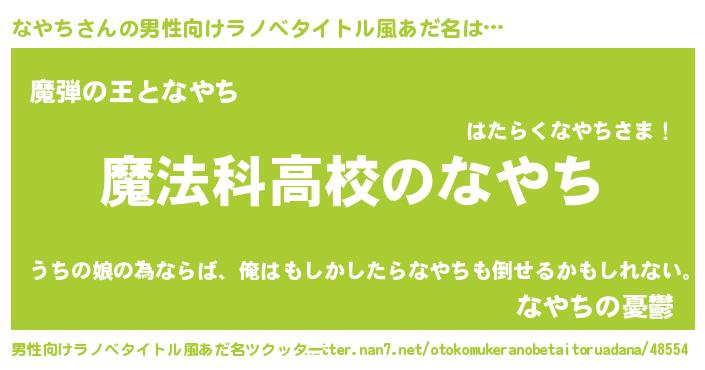 | 女子向けラノベタイトル風あだ名 | 『なやちなんてお断りですっ。』 |