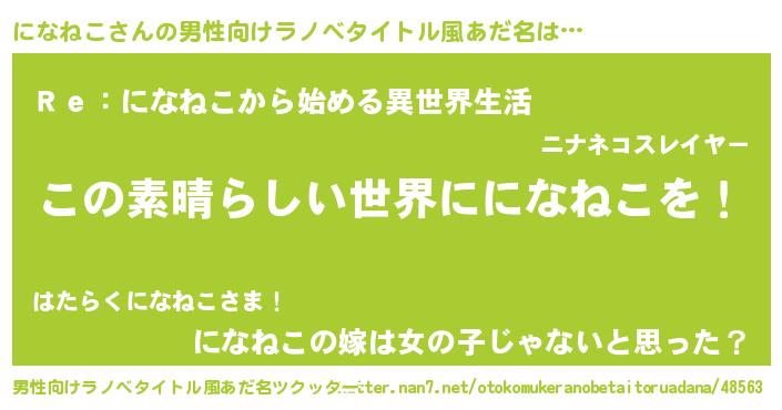| 意味不明あだ名 | 『住所不定無職になねこ(7歳)』 |