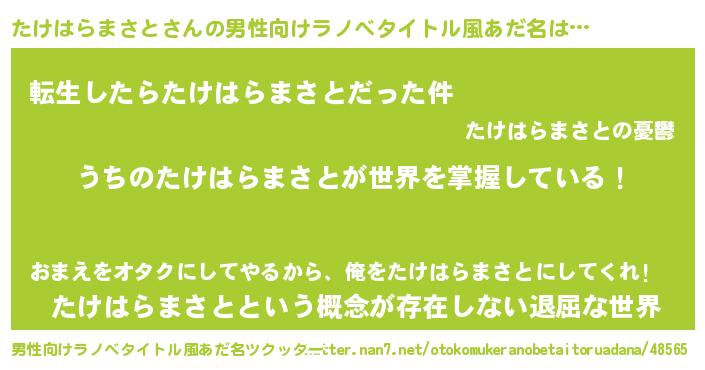 | ヘコむあだ名 | 『たけはらまさと(小並感)』『たけっふぃ~』 |