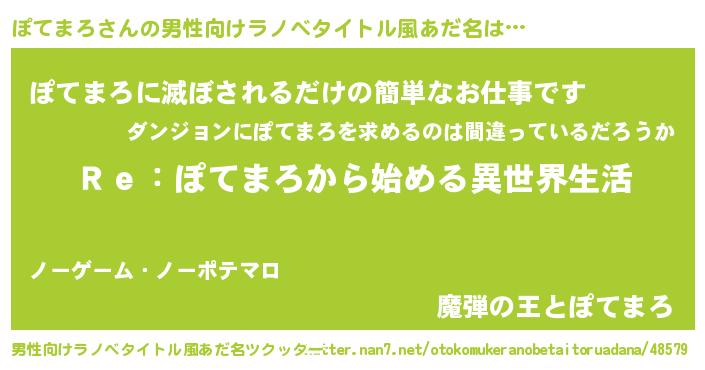 | 伝説のあだ名 | 『覚醒した魔法使いぽてまろ』 |