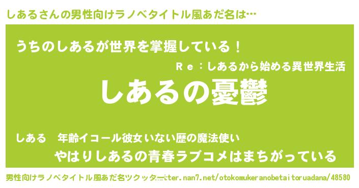 | 女子向けラノベタイトル風あだ名 | 『(仮)しあるのやんごとなき事情』 |