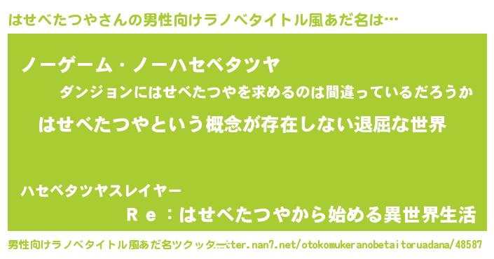 | 意味不明あだ名 | 『永久保存はせべたつや』 |
