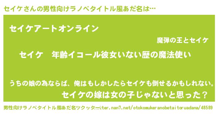 | ヒーロー風カッコイイあだ名 | 『スーパーセイケ』『天弓騎士セイ』 |
