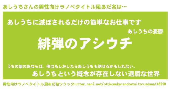 | 女子向けラノベタイトル風あだ名 | 『シンデレラあしうち家の靴箱館』 |