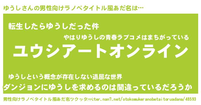 | ヒーロー風カッコイイあだ名 | 『スーパーユウシ』『銀牙騎士ユウ』 |