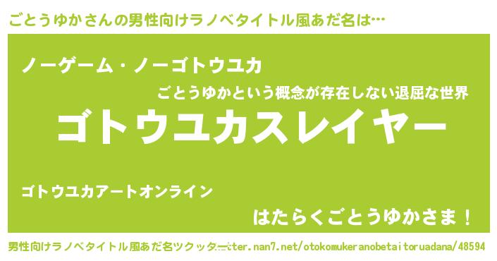 | ヘコむあだ名 | 『ごとうゆか(遠い目)』『ごとにゅー』 |