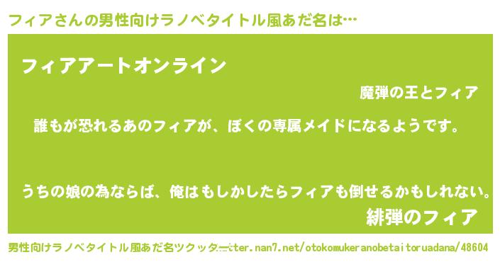 | ヘコむあだ名 | 『フィア(小並感)』『フィにゅー』 |
