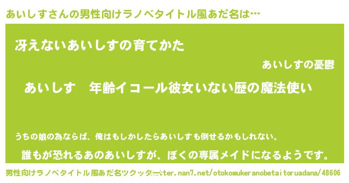 | 女子向けラノベタイトル風あだ名 | 『あいしすの玉の輿計画!』 |