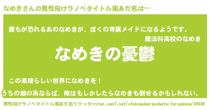 | ヘコむあだ名 | 『なめもー』『なめき(震え声)』 |