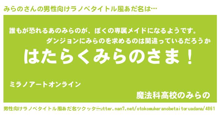 | 伝説のあだ名 | 『聞きしに勝る勇者みらの』 |