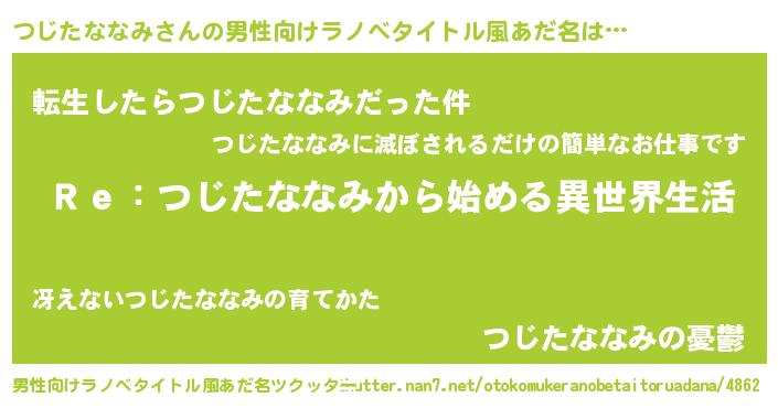 | 意味不明あだ名 | 『自称つじたななみ』 |