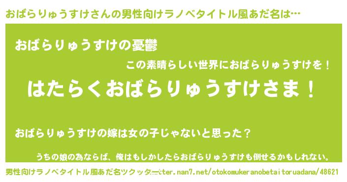 | ヒーロー風カッコイイあだ名 | 『スーパーオバラリュウスケ』 |