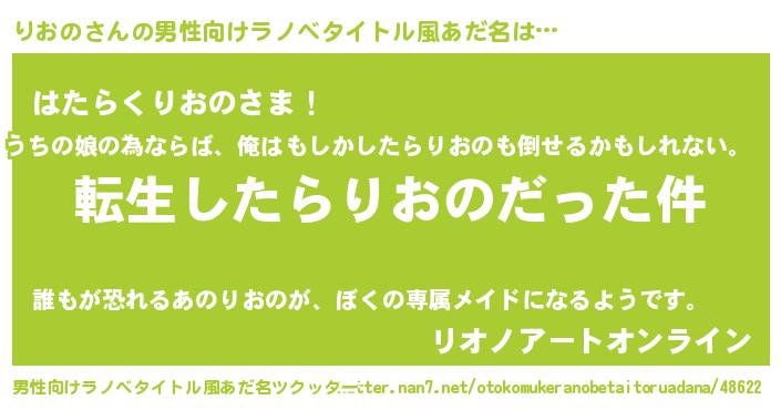 | 女子向けラノベタイトル風あだ名 | 『りおのの玉の輿計画!』 |