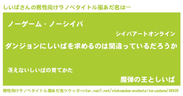 | 女子向けラノベタイトル風あだ名 | 『しいばは平凡を望む』『しいば恋絵巻』 |