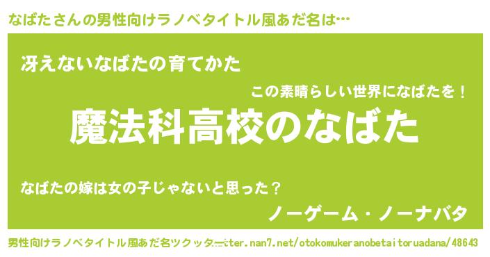 | ヒーロー風カッコイイあだ名 | 『超時空戦士ナバタ』『友情の使者なばた』 |
