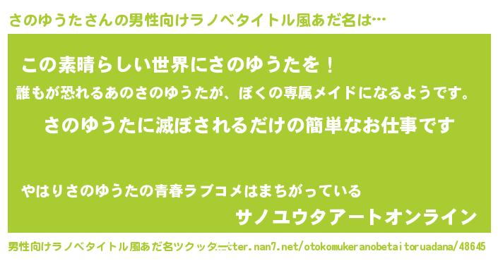 | 意味不明あだ名 | 『住所不定無職さのゆうた(56歳)』 |