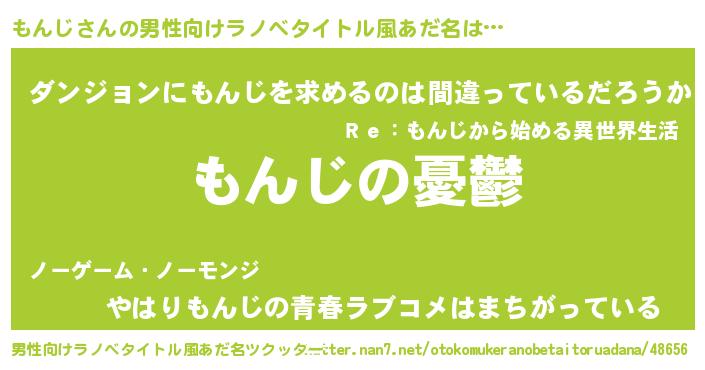 | 胡散臭い通販商品みたいなあだ名 | 『必ず成功するブレスレット…その名も「もんじ」』 |