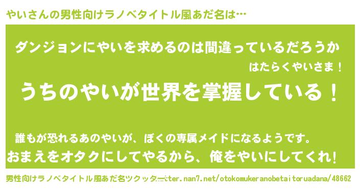 | ヘコむあだ名 | 『やいっ子』『やい(笑)』『やいもー』 |