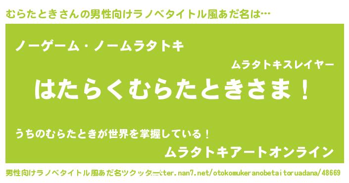 | 意味不明あだ名 | 『眠気覚ましガムむらたとき味』 |