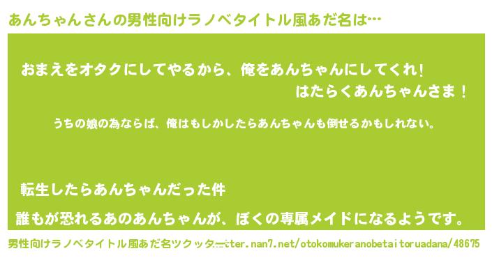 | ファンタジー風あだ名 | 『エターナルアンチャンー』 |