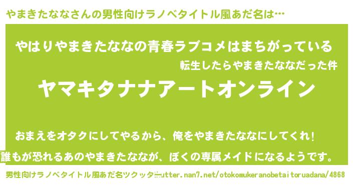 | 女子向けラノベタイトル風あだ名 | 『やまきたなな姫と円卓の騎士』 |