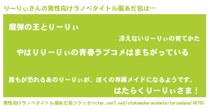 | 女子向けラノベタイトル風あだ名 | 『りーりぃの雑貨屋さん』 |