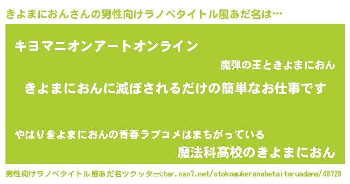 | 胡散臭い通販商品みたいなあだ名 | 『モテモテ間違いなし霊験あらたかなお札…その名も「きよまにおん」』 |