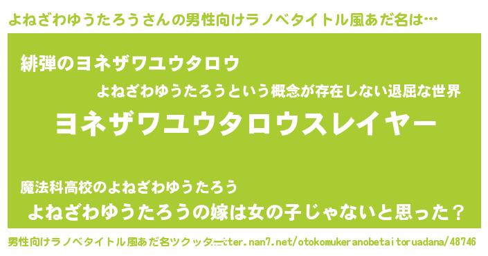 | 胡散臭い通販商品みたいなあだ名 | 『信頼と実績のペンダント…その名も「よねざわゆうたろう」』 |