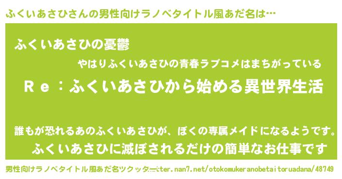| 意味不明あだ名 | 『自称ふくいあさひ』 |