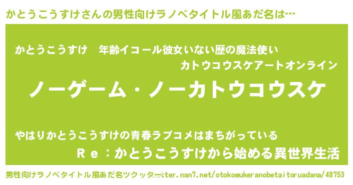 かとうこうすけさんの男性向けラノベタイトル風あだ名をツクッター!