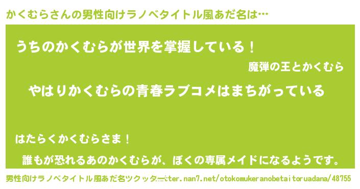 | 女子向けラノベタイトル風あだ名 | 『かくむらの雑貨屋さん』 |