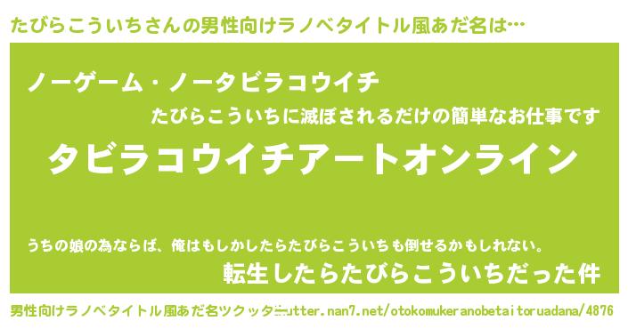 | 胡散臭い通販商品みたいなあだ名 | 『億万長者になれる水晶球…その名も「たびらこういち」』 |