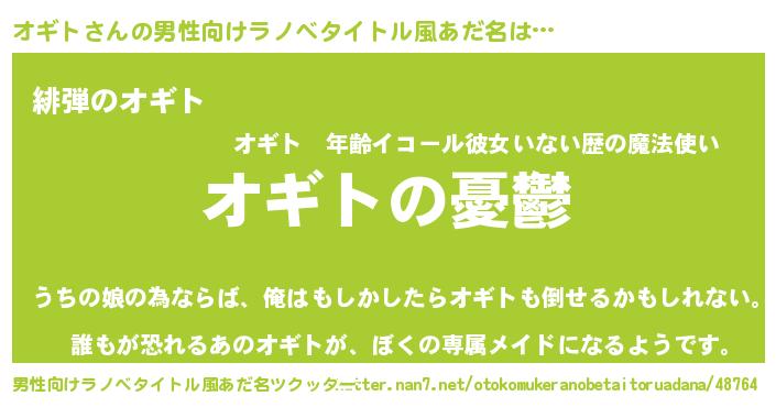 オギトさんの男性向けラノベタイトル風あだ名をツクッター!