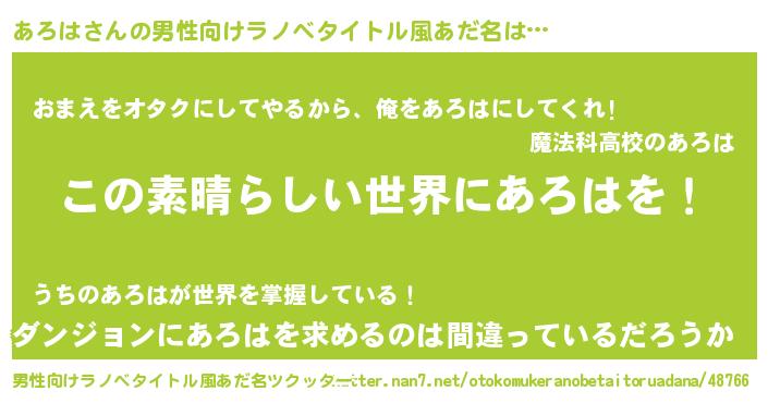 | ヒーロー風カッコイイあだ名 | 『仮面アロダー』『正義の使者あろは』 |