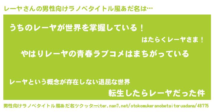 | ヘコむあだ名 | 『豆乳』『レーヤ(笑)』『レーっぺ』 |